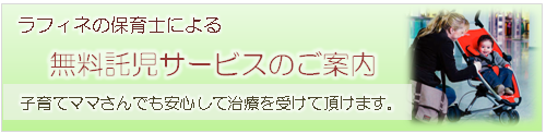 ラフィネでは子育て中のママさんでも安心して治療を受けて頂けるよう、専門スタッフが責任を持ってお子様をお預かりいたします。